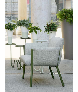 Comoda poltrona, realizzata in tessuto sfoderabile, idrorepellente e antimacchia, scelta colore e struttura in acciaio verniciato scelta colore, molto resistente alle intemperie. Estremamente pratica per interno o per esterno, puoi tirarla fuori nei mesi estivi per stare all'aria aperta e gustare il vostro giardino o terrazzo in compagnia degli amici. Uno stile mediterraneo, fresco e grintoso, che unisce modernità a tradizione. Il design e le dimensioni contenute assicurano estrema versatilità nel collocarla dovunque volete.