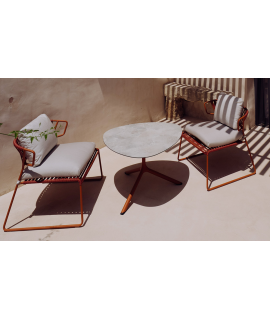 Raffinata poltrona per esterno, ispirata agli anni 50, è di design e allo stesso tempo molto pratica e maneggevole. Grazie alla resistenza e praticità del materiale con la quale è realizzata è adatta, non solo per casa, giardino o terrazzo, anche per bar, alberghi o ristoranti. Una linea affascinante per arredare con gusto e bellezza. Sotto troverete i cuscini da abbinare.