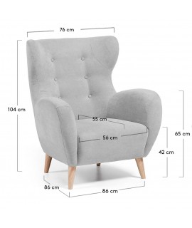 CATALINA poltrona in tessuto con bottoni e gambe in legno naturale
