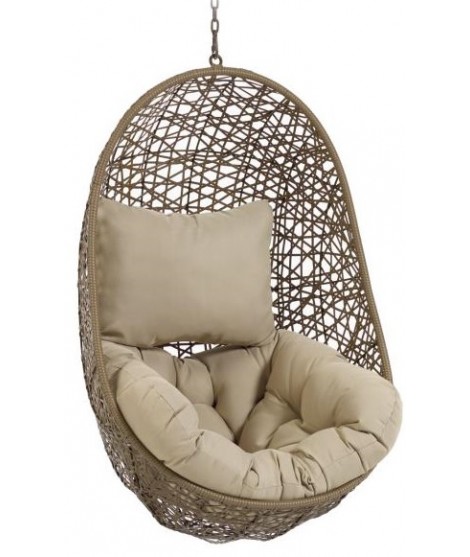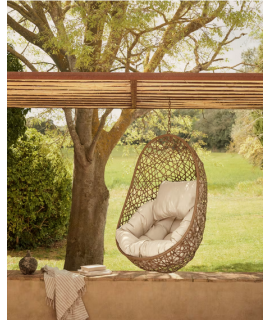 FLORA poltrona sospesa in rattan intrecciato con cuscini inclusi per interno o esterno