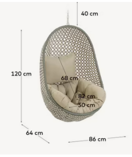 Con la caratteristica essenza coloniale, questa poltrona sospesa in rattan intrecciato a mano, con cuscini removibili inclusi, corda e moschettone per posizionarla al meglio. Anche in terrazzo garantisce il comfort del vostro relax sia al chiuso che all'aperto. Nella foto della scheda tecnica sono indicate tutte le misure.