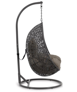 Un'essenza coloniale mista al design moderno, per questa poltrona sospesa. Realizzata in rattan intrecciato a mano, con cuscini removibili inclusi, in tessuto idrorepellente e basamento in acciaio. Resistente agli agenti atmosferici, ai raggi UV ed è facile da pulire, ideale per esterno. Catena, moschettone e base compatibile inclusi. La base in acciaio può essere smontata. Adatta per ambienti interni ed esterni. Portata massima 110 kg. Riporre i cuscini in caso di pioggia. Nella foto della scheda tecnica sono indicate tutte le misure.
