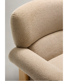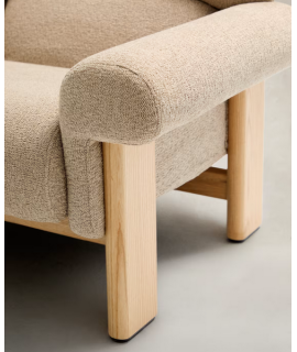 GOZO poltrona in tessuto effetto ciniglia beige e gambe in legno massello di frassino naturale design casa