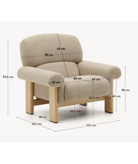 Bella e solida poltrona dalla linea elegante e dal look rinnovato, ispirata al genere scandinavo degli anni 30. Molto rifinita, con forte struttura in legno massello di frassino naturale, si distingue sia per l’estetica che per la comodità. Con seduta e schienale imbottiti e rivestiti in tessuto effetto ciniglia beige. Intrigante, dal design essenziale e dal carattere deciso.