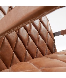 Intrigante poltrona dal fascino vintage industriale. Per arricchire la vostra casa con un elegante gusto retrò. Realizzata in pelle sintetica effetto invecchiato color tabacco, con una particolare e meticolosa lavorazione artigianale. Molto comoda, dopo una giornata di lavoro è piacevole rientrare a casa e rilassarsi su una poltrona di questo stile particolare e ricercato.