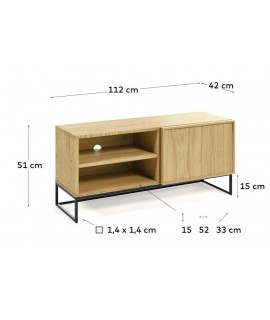 Mobile porta TV in legno naturale di rovere con 1 anta e 2 vani a giorno, con foro passacavi.Una linea di design pulita e raffinata. Per una casa moderna, etnica, nordica, vintage o industriale. Sotto troverete tutti i complementi di questa linea. Nella foto della scheda tecnica tutte le misure.