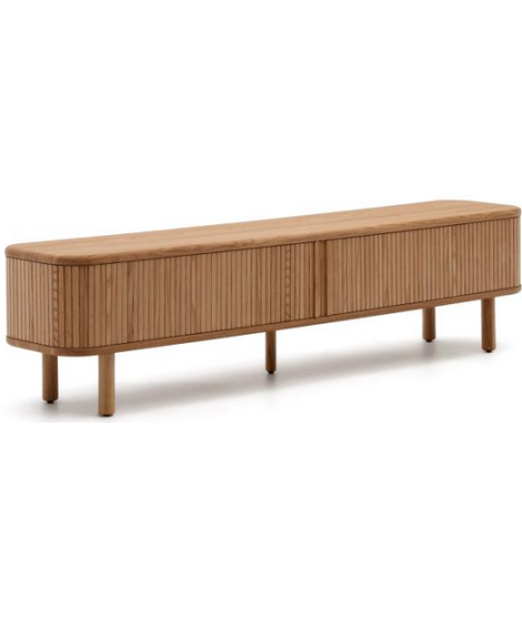 Linea accattivante per questo porta TV elegante e prestigioso. Con 2 porte scorrevoli struttura in impiallacciatura di frassino finitura naturale disposto a listelli accostati, rendendo questa madia un pezzo unico, che trasuda essenzialità e raffinatezza. Un meraviglioso complemento d'arredo, che trasmette luminosità all'ambiente.