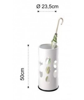 Lineare portaombrelli in acciaio verniciato bianco e vaschetta raccogligocce. Uno stile che si adatta a un arredo classico o moderno. Misure: diametro cm 23 x 50 h