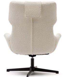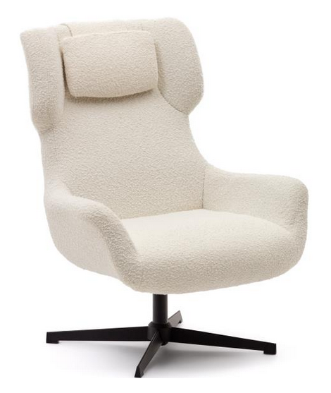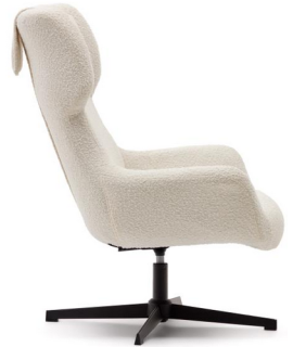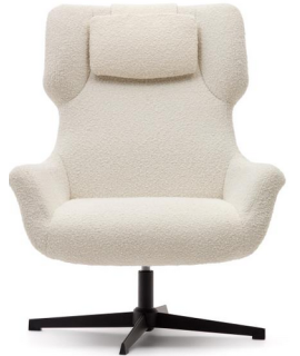 Armoniosa e molto rifinita poltrona girevole in eco shearling bianco e base in acciaio nero. Comoda e avvolgente è ideale per leggere, vedere la TV, rilassarsi, garantisce il massimo del confort con schienale alto e rinforzo lombare. Bella ed elegante.
