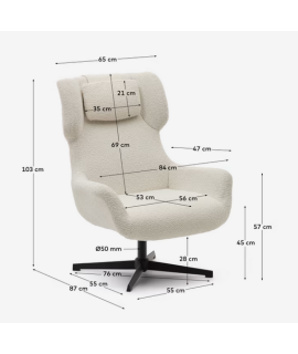 Dal design innovativo questa comoda poltrona girevole. Realizzata in eco shearling bianco e base in acciaio verniciato nero opaco. Schienale alto e rinforzo lombare. Una poltrona ergonomica che garantisce il massimo confort.