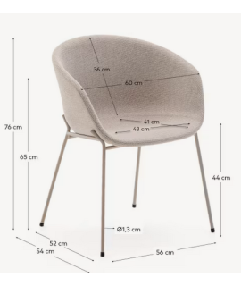 Design semplice e lineare per questa sedia con braccioli con uno schienale curvato che migliora il confort e la comodità. Ideale per ambienti moderni, ma adatta anche ad un arredo classico. Realizzata in morbida ciniglia beige e gambe in metallo verniciato a colore. Perfetta sia per la casa, bella in soggiorno, in camera da letto, che per gli uffici o le sale d'attesa. Per dare un aspetto più prestigioso e importante.