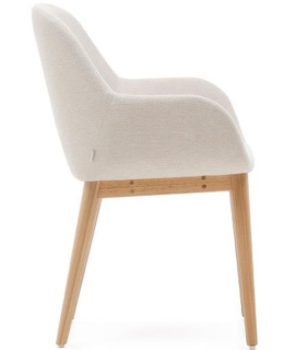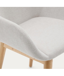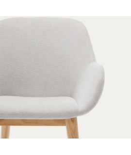 CHIMA sedia con braccioli in tessuto effetto ciniglia panna e gambe in frassino naturale design casa poltroncina
