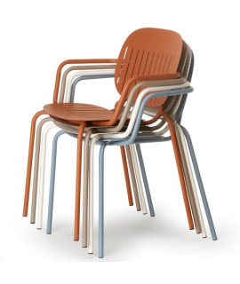 Bellissima sedia con braccioli, incantevole nel vostro giardino o terrazzo. Una linea pulita ed essenziale, ergonomica e confortevole. Eccezionalmente stabile, con il minimo ingombro possibile, per ottimizzare gli spazi. Interpreta con disinvoltura ogni ambiente, dalla casa alla collettività ed è ideale per gli spazi interni o esterni.