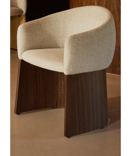 ANTAS sedia con braccioli in ciniglia idrorepellente beige e impiallacciatura in noce