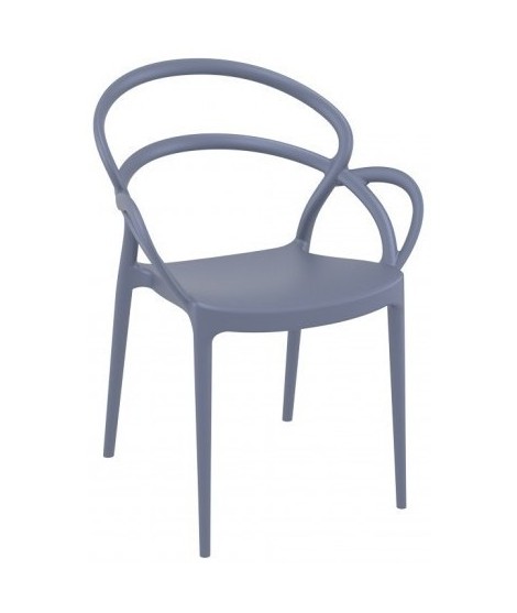 Sedia con braccioli di design. Una poltroncina sfiziosa nella linea, leggera e maneggevole, realizzata in polipropilene. Per dare un meraviglioso tocco ai vostri arredi da bar, caffè, gelaterie, ristoranti, locali sul lungomare, alberghi, stabilimenti balneari. Disponibile nei colori: bianco, antracite o tortora. Pratica per esterno o interno. Sedia IMPILABILE che ha la caratteristica di una elevata resistenza. Struttura molto forte, duratura e resistente agli agenti atmosferici e raggi UV. Una sedia bella, elegante e di design.