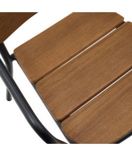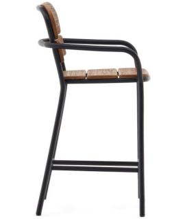 IVREA sgabello con braccioli seduta h 65 in alluminio nero e legno massello di eucalipto per esterno