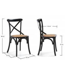 Incantevole e affascinate sedia che regalerà al vostro ambiente uno stile unico e particolare, nel segno dell'eleganza e della raffinatezza. Realizzata con struttura in massello di olmo tinto, lavorato a vapore. Con schienale a croce e seduta in rattan naturale. Un equilibrio di forme, meravigliosa per cucina o soggiorno.