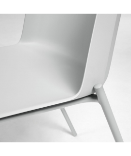 Seduta in polipropilene grigio, struttura in acciaio verniciato grigio.