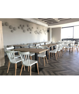 Favolosa sedia, grintosa e con solida struttura in legno. Scocca in polipropilene nei colori: rosso, verde, blu, beige, grigio, tortora, nero o bianco. Una rivisitazione della classica sedia country. Adatta per un arredo moderno, vintage o country.