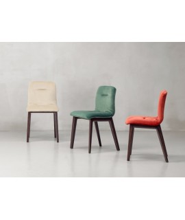 Sedia moderna e di design, meravigliosa per ogni stanza della vostra casa. Arreda con gusto ed è molto confortevole. Elegante e raffinata in ogni ambiente dove la si colloca, casa o contract. In velluto scelta colore o ecopelle beige e gambe in wengè o naturale. Specificare nell'ordine il colore delle gambe. Disponibile anche in velluto ignifugo.