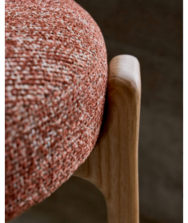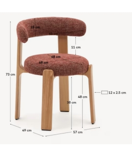 TAUNGA sedia in tessuto effetto ciniglia terracotta e gambe in legno massello di frassino naturale design