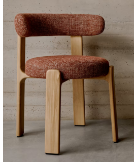 Bella e solida sedia dalla linea elegante e dal look rinnovato, ispirata al genere scandinavo degli anni 70. Molto rifinita, con forte struttura in legno massello di frassino naturale, si distingue sia per l’estetica che per la comodità. Con seduta e schienale imbottiti e rivestiti in tessuto effetto ciniglia terracotta. Intrigante, dal design essenziale e dal carattere deciso.