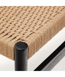 PALMIA panca in legno massello di rovere finitura nera e seduta in corda