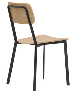 Una sedia forte, robusta, pratica e molto resistente, realizzata con struttura in metallo verniciato nero e seduta e schienale in legno naturale multistrato. Una linea essenziale che ricorda la tradizione. Adatta anche per ristoranti, alberghi o bar. Sotto, gli sgabelli da abbinare.
