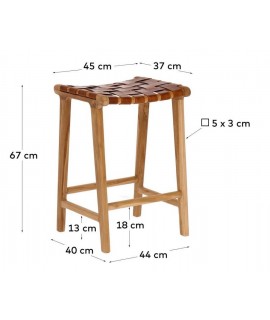 Seduta realizzata con fascette di vera pelle naturale marrone, intrecciate a mano e struttura in legno massello per questo favoloso e particolare sgabello. La naturalezza e la preziosità di questi elementi, danno prestigio al vostro ambiente, rendendolo caldo e accogliente.