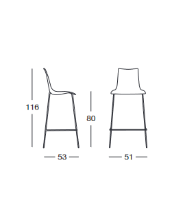 ZEBRA tecnopolimero 80 cm altezza seduta scelta colore sgabello telaio cromato design bar cucina contract