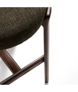 Bello e solido sgabello, dalla linea elegante e dal look rinnovato, ispirato al genere scandinavo degli anni 70. Molto rifinito, con forte struttura in legno massello di frassino finitura noce, si distingue sia per l’estetica che per la comodità. Con seduta e schienale imbottiti e rivestiti in tessuto effetto ciniglia verde. Intrigante, dal design essenziale e dal carattere deciso.