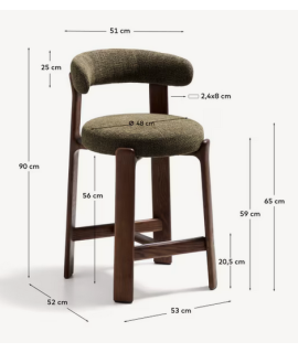 Bellissimo sgabello realizzato con solida struttura in legno massello di frassino finitura noce e seduta e schienale imbottiti e rivestiti in tessuto effetto ciniglia verde. Con certificazione da produzione ecologicamente sicura e responsabile nei confronti dell’ambiente. Legno certificato da gestione forestale responsabile. Una linea tradizionale rivista in chiave moderna, rende questo sgabello elegante e ricercato. Ogni gamba è dotata di gommino per proteggere il pavimento. Adatta per qualsiasi tipo di arredo dal classico al moderno. Portata massima 130 Kg. Tutte le misure sono nella foto della scheda tecnica.