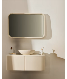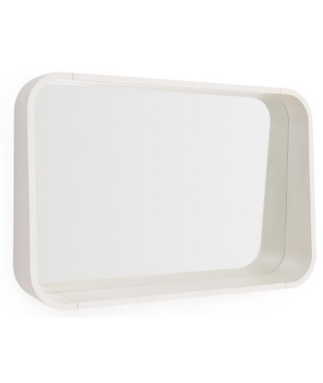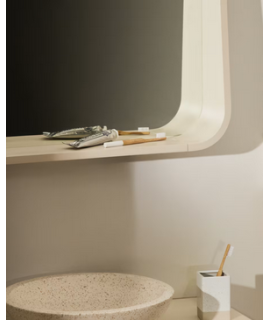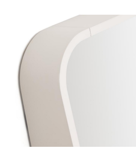 Stile nordico per questo specchio, che punta sull'essenzialità. Realizzato con una cornice in multistrato di frassino con finitura laccata beige con comoda mensola. Linea pulita e semplice, di design e di grande effetto luminoso. Ideale per bagno.