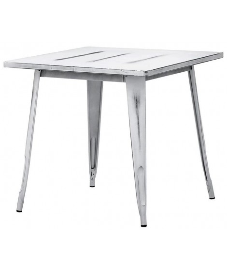 Tavolo con struttura in metallo verniciato effetto anticato: bianco o nero. Perfetto per bar, caffè, residence, ristoranti, locali sul lungomare, alberghi, b&b, stabilimenti balneari. Ideale per i vostri spazi all'aperto, giardino o terrazzi. Semplice e raffinato.