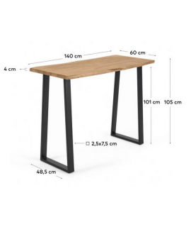Tavolo alto con struttura in metallo verniciato nero e piano in legno massello di acacia naturale. Un meraviglioso abbinamento tra il freddo del metallo e il calore del legno massiccio. Darete alla vostra casa un tocco prezioso, che valorizzerà tutto il contesto. Luminosità, essenzialità e buon gusto entreranno nel vostro ambiente. Sotto troverete i complementi della stessa linea da abbinare. Tutte le misure sono nella foto della scheda tecnica.