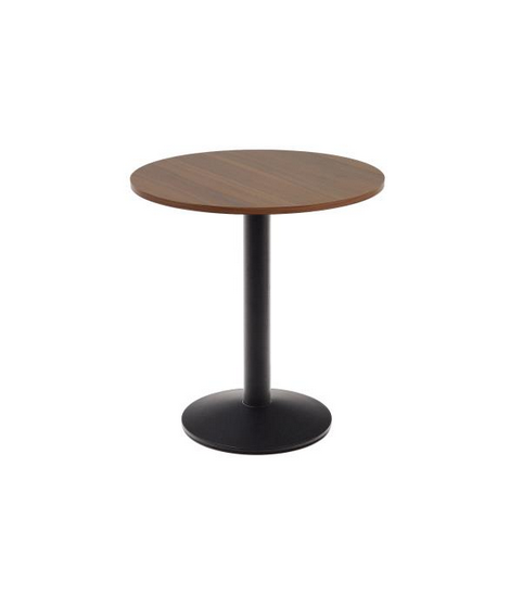 Un tavolo bello, elegante, pratico e resistente. Ideale per bar, ristoranti, hotel, realizzato con colonna rotonda in acciaio verniciato nero. Piano top rotondo in melaminico finitura noce.