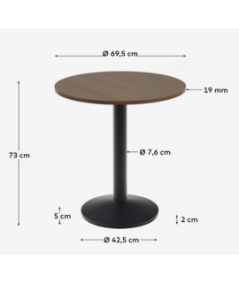 MADINA tavolo piano diam 70 cm in melaminico finitura noce e base in metallo verniciato nero per bar gelaterie ristoranti