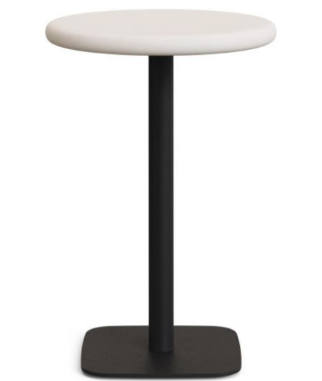 Un tavolo alto bello e pratico con piano rotondo in cemento bianco Ø 70 cm e dello spessore di 6 cm, colonna rotonda e base quadrata in acciaio verniciato a polvere nero. Ogni pezzo è esclusivo, con tonalità e texture uniche. Ideale per bar, caffè, gelaterie, ristoranti, locali, alberghi, agriturismi, stabilimenti balneari. Molto resistente adatto per esterno o interno.