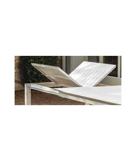 Tavolo allungabile con apertura telescopica. Struttura in alluminio verniciato bianco, antracite o tortora. Disponibile in due misure: 160 x 90 cm allungabile 240 cm oppure 200 x 110 cm allungabile 300cm. Piano a doghe e gambe smontabili. Perfetto per bar, caffè, residence, ristoranti, locali sul lungomare, alberghi, b&b, stabilimenti balneari. Ideale per i vostri spazi all'aperto, giardino o terrazzi. Semplice e raffinato. Sotto ci sono le sedie della stessa linea da abbinare al tavolo.