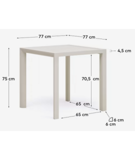 Tavolo elegante e di design, resistentissimo con pratica struttura in alluminio, un materiale leggero, resistente alla corrosione, ai raggi UV, alle intemperie e alla ruggine, ideale per esterno, per abbellire il vostro giardino o terrazzo. Perfetto anche per bar, residence, ristoranti, locali sul lungomare, alberghi, b&b, stabilimenti balneari. Con protezioni in plastica regolabili per proteggere il pavimento. Nella foto della scheda tecnica sono indicate tutte le misure.