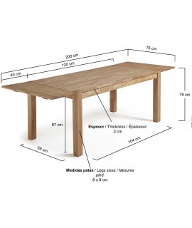 Tavolo 120 x 75 dalla quale si estraggono due prolunghe laterali ognuna di 40 cm, allungabile a 160 cm. oppure fino a 200 cm. tutto aperto. Bello e discreto, meraviglioso in legno massiccio disponibile in rovere naturale. Tutte le misure sono nella foto della scheda tecnica. Misure:cm. 120 x 75 x 75 h. chiusocm. 200 x 75 x 75 h. aperto