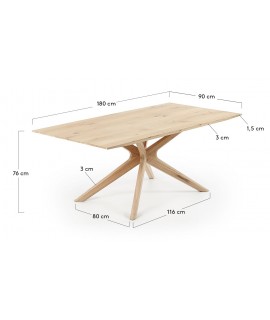 Affascinante tavolo moderno dalla linea intrigante e sobria, che irrompe prepotentemente nell'ambiente dove viene collocato. Armonioso e accattivante, affascina la sinuosità delle gambe, solide e robuste. Bello e grintoso, caratterizzato da una struttura interamente in legno massello di rovere con finitura sbiancata, disponibile in due misure. Un look affascinante che non stanca nel tempo.