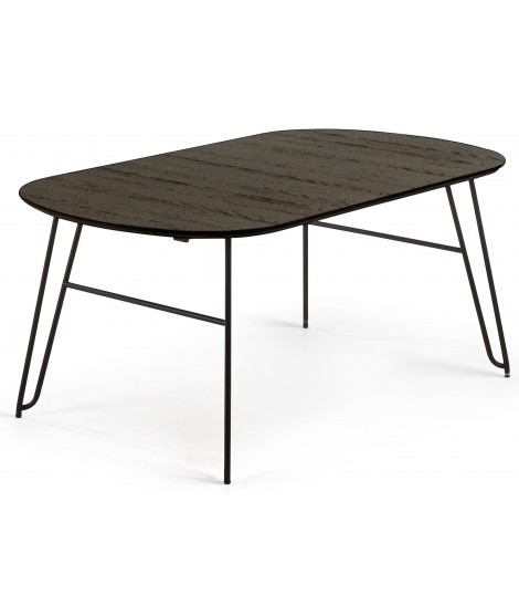 TROPEA 140 allung 220 o 170 allung 320 tavolo ovale allungabile con piano in frassino cenere e gambe in metallo nero