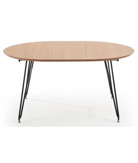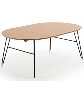 Tavolo allungabile dal design minimalista, raffinato e discreto. Realizzato con piano in rovere naturale e gambe in metallo verniciato nero. Resistente e pratico, allungabile con comoda apertura a scorrimento. Forte, stabile e accogliente, con gambe perimetrali comodo e confortevole per tutti i vostri ospiti.