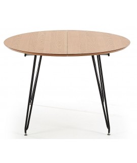 GENOBITO tavolo allungabile diametro 120 arriva a 200 cm con piano in rovere naturale e gambe in metallo nero