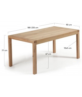 DALLAS tavolo allungabile 180x90 all 230 cm o 200x100 all 280 cm in rovere naturale