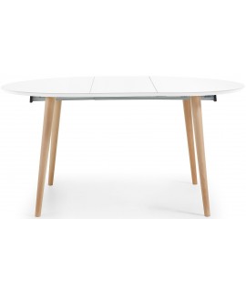 OQUI rotondo diam 120 allungabile piano in legno laccato bianco e gambe in faggio naturale tavolo