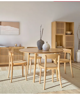 Tavolo rotondo allungabile. Un tavolo tradizionale, ma attuale e moderno. Fine e raffinato, un design nordico, che conquista nella linea pulita e nei colori tenui e instancabili. Robusto e solido con piano impiallacciato rovere e gambe in legno massello. Un tavolo delizioso, che all'occorrenza diventa grande e capiente.