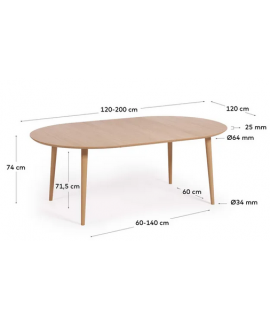 ASPI rotondo diam 120 allungabile piano impiallacciato rovere e gambe in legno massello tavolo
