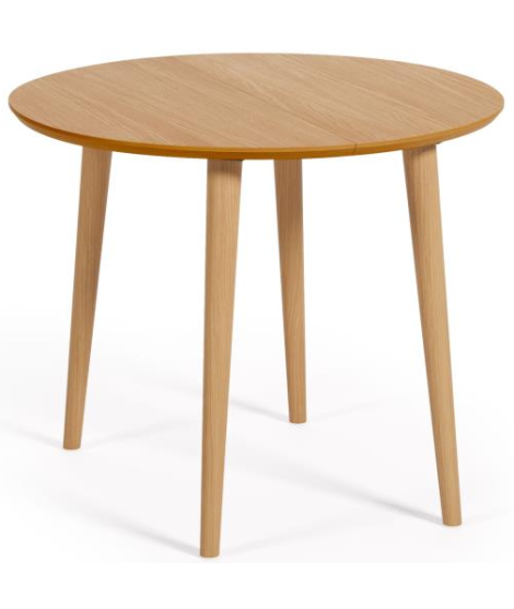 CAROLA rotondo diam 90 allungabile 170 cm piano MDF impiallacciato rovere e gambe in legno massello tavolo